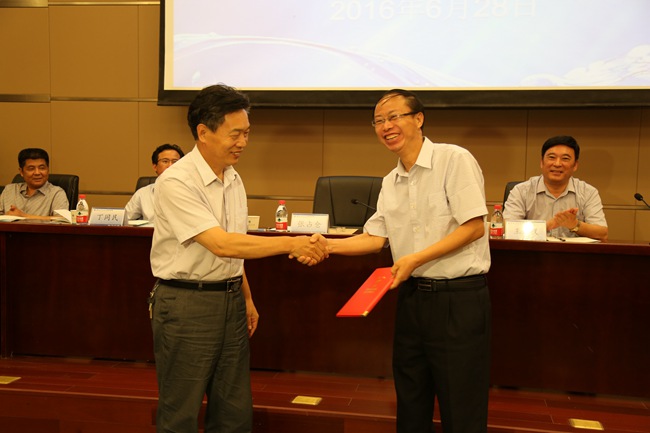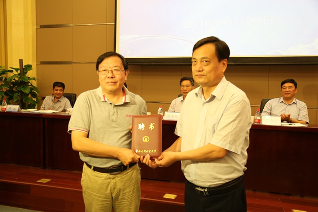 华北水利水电大学校长刘文锴向受聘专家代表颁发聘书