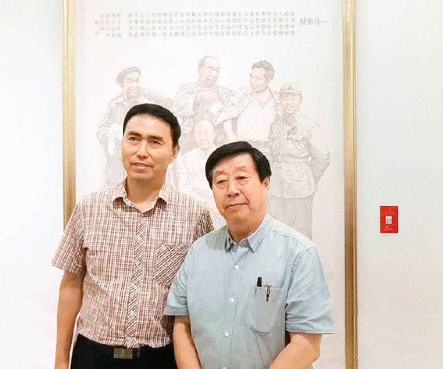 中国美术家协会主席刘大为与石品教授在《一代楷模》作品前合影