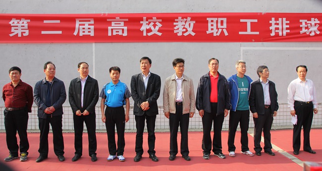 我校副校长、校排球协会名誉会长王天泽,校工会主席张加民出席开幕式