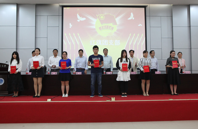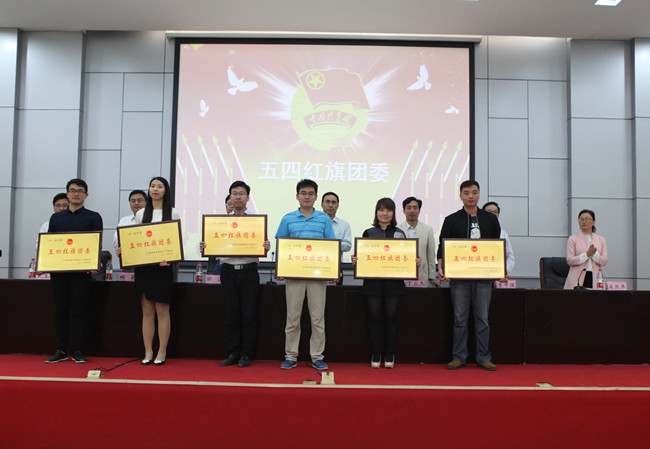 获得五四红旗团委的单位代表领奖