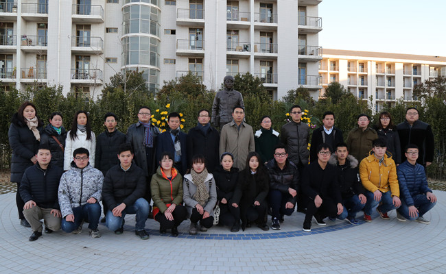 参加纪念活动师生代表在瑞鹏塑像前合影