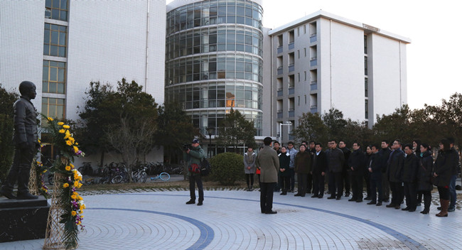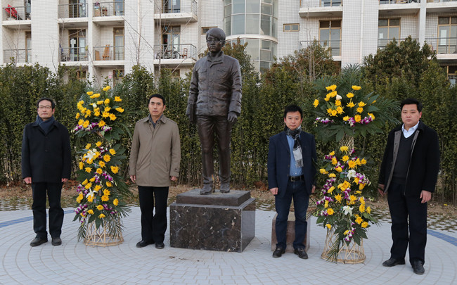 校党委副书记石品等向瑞鹏塑像敬献花篮