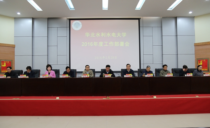 2月28日上午,春风和煦,阳光明媚。华北水利水电大学2016年度工作会议在龙子湖校区第一报告厅隆重召开,回顾总结2015年工作,安排部署2016年工作。全体校领导、全体中层干部、民主党派负责人、国务院特殊津贴专家、省管优秀专家、省级特聘教授、省级学术技术带头人、二级教授等参加了会议。会议由校党委副书记石品主持。