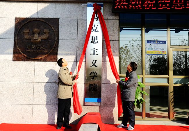 近日,经校党委研究决定,我校思想政治教育学院更名为马克思主义学院。11月26日下午,马克思主义学院揭牌仪式在龙子湖校区文科9号楼前举行。校党委副书记石品,河海大学马克思主义学院学术委员会主任、博士生导师孙其昂教授出席仪式并共同为马克思主义学院揭牌。校党委组织部、党委宣传部有关负责同志以及龙子湖校区各学院(部、中心)党政负责同志、马克思主义学院全体教职工和在校研究生及部分学生代表等共百余人参加了揭牌仪式。