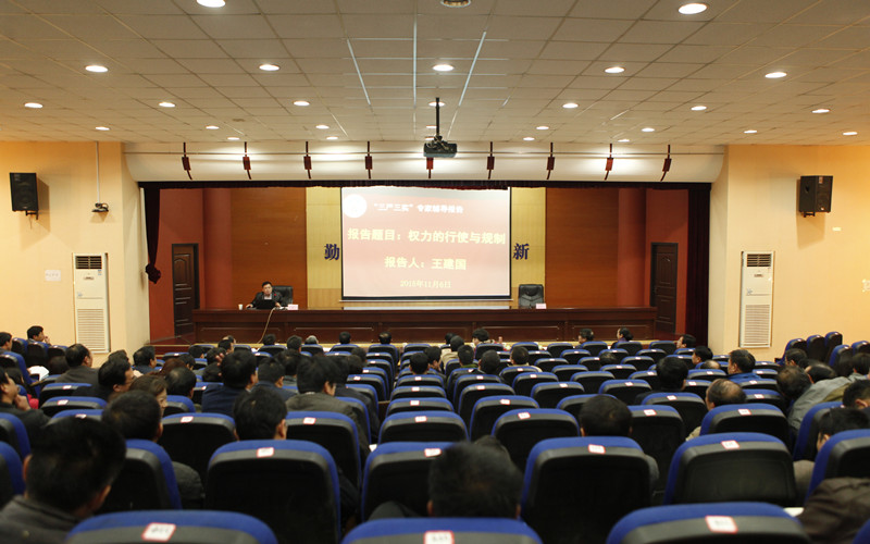 根据我校《“三严三实”专题教育第三专题学习研讨方案》的安排,11月6日下午,我校邀请省管专家、郑州大学法学院教授王建国作“三严三实”专题教育第三专题专家辅导报告,报告会在花园校区讲堂三举行。省管高校第二巡检组吴建中副处长出席报告会,全体在校校领导、全体处级干部、党政部门科级干部及各学院办公室主任参加了报告会。报告会由校党委组织部部长田逸主持。
