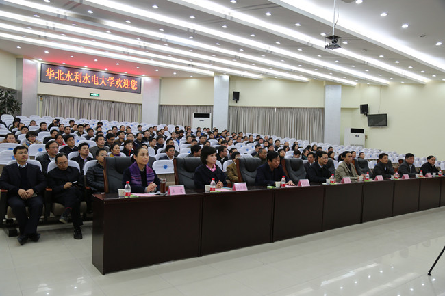 省委组织部科教企业干部处副处长王剑宣读了省委关于我校领导班子调整的决定:刘文锴同志任华北水利水电大学校长、党委副书记;严大考同志因年龄原因,不再担任华北水利水电大学校长、党委副书记职务;许琰同志任黄河水利职业技术学院党委书记,不再担任华北水利水电大学党委副书记职务。