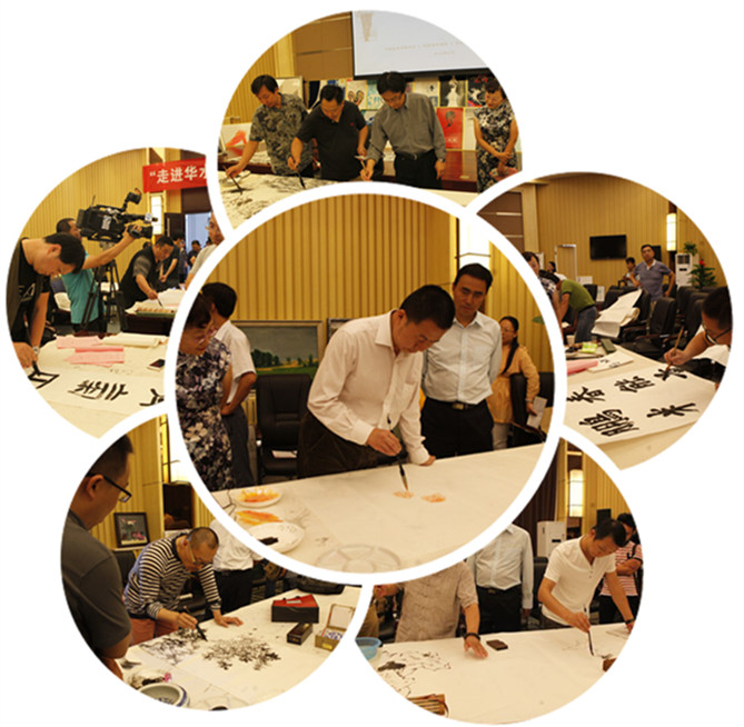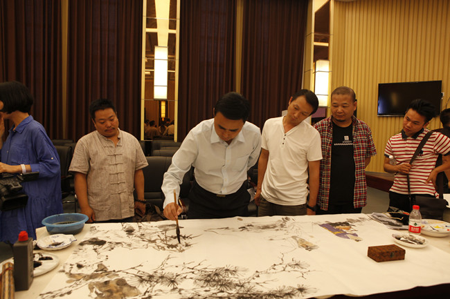 书画家们正在挥毫泼墨、各展风采