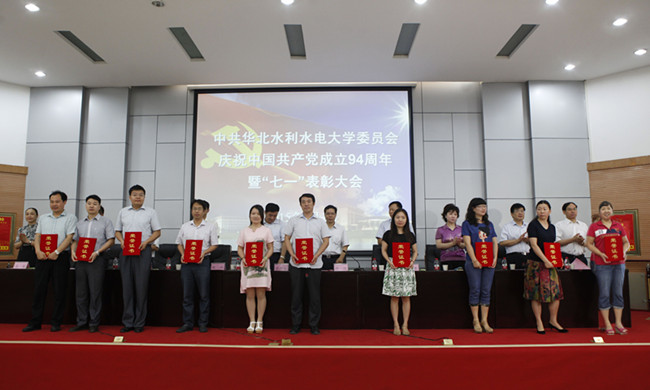校党委副书记石品宣读了《关于表彰先进基层党组织、优秀共产党员和优秀党务工作者的决定》。土木与交通学院党委等6个先进基层党委、机关党委第一党支部等24个先进党支部、胡宝柱等140名优秀共产党员,温随群等34名优秀党务工作者受到表彰。出席会议的校领导为获表彰的先进集体和优秀个人颁奖。