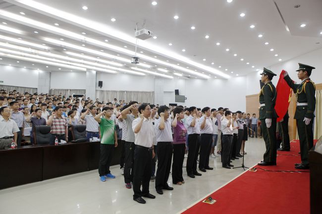 会议在雄壮的国歌声中拉开帷幕。校党委副书记许琰领誓,王清义书记等校领导带领新党员入党宣誓、老党员重温入党誓词。招生就业处张卫建代表优秀共产党员发言,分享了学习工作体会,表达了投身共产主义事业的坚定信念。