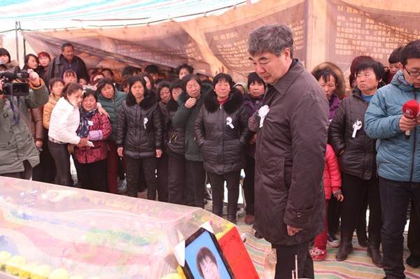 校党委书记朱海风含泪缓缓走过孟瑞鹏同学的遗体