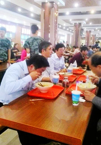 最后,朱书记到学生食堂就餐,并就饭菜花样、质量和价格等与学生交谈。