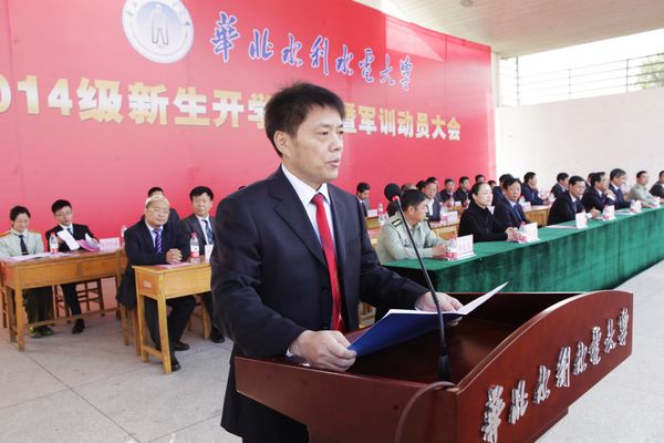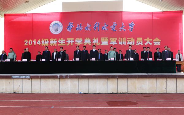 副校长王天泽宣布军训领导小组和军训团成员名单。校党委书记朱海风代表校党委、校行政向军训团庄严授旗。中国人民解放军71391部队副政委车树光同志代表部队及帮训官兵讲话。他说,华北水利水电大学是一所特色鲜明的高水平大学,校领导非常重视国防教育事业和新生军训工作,充分体现了心系国防的高度责任感。在当今时代,军训对于培养有知识、有文化、有理想、有毅力的高素质人才意义重大。作为承训部队,一定会严格要求自己、从严管理、全力以赴,高标准、高质量完成军训任务。最后,部队军训教官展示了高水平的示范表演。