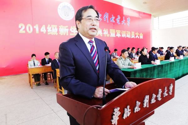 严校长对2014级全体新生提出了殷切的希望。一要有梦想。作为新时代的大学生,要把个人梦想与中国梦结合起来,在“恰同学少年、风华正茂”之际,做好职业生涯规划和人生目标定位,牢牢把握正确的成长方向,将饱含着青春、创意与激情的个人梦想,融入民族复兴的中国梦,激发出执著梦想、昂扬乐观、积极向上的正能量。二要勤学习。当今世界,科技进步提速,知识更新加快,实现中国梦呼唤大批高素质人才,学习对于青年学生来说显得更加重要、更加紧迫。他希望同学们勤于学习、敏于求知,增强自信,提升素质、能力和才干,成为实现中国梦的有用人才。三要会做人。在大学,学会做人与学会知识同等重要。他希望同学们加强道德修养,做品格高尚的人;与教师、同学关系融洽,做与人为善的人;正确处理矛盾,不计小过,做胸怀宽广的人;自觉学习,利用好大学时光,做善于自律的人;自强自立,勤于做事,做勇于担当的人。四要善思考。“学而不思则罔,思而不学则殆”。他希望同学们能顺利完成从中学到大学的转变,学会独立地思考、独立地学习、独立地生活,提升发现问题、研究问题、解决问题的能力。五要有毅力。顽强的毅力可以征服世界上任何一座高峰。人生不仅需要知识,更需要毅力。军训就是锻炼毅力的最好形式。他希望同学们能认真地向教官学习,学习他们优良的作风、过硬的本领和严明的纪律,以军人的标准严格要求自己,努力把自己打造成一个意志顽强、斗志昂扬的新时代大学生。