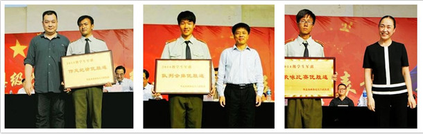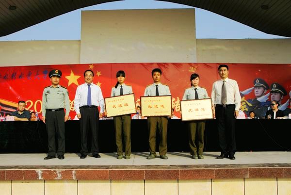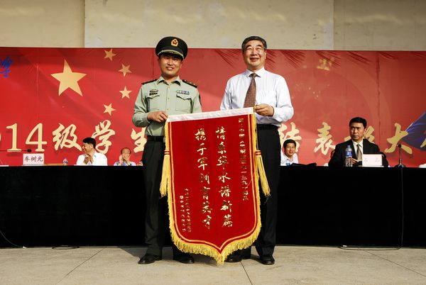 副校长王天泽宣读了《军训先进集体和先进个人表彰决定》。在主席台就座的校领导向先进集体和先进个人颁奖。朱书记代表学校向承训部队赠送了锦旗。大会结束后,朱书记、严校长、石书记等校领导又专门看望慰问了承训部队军训教官。