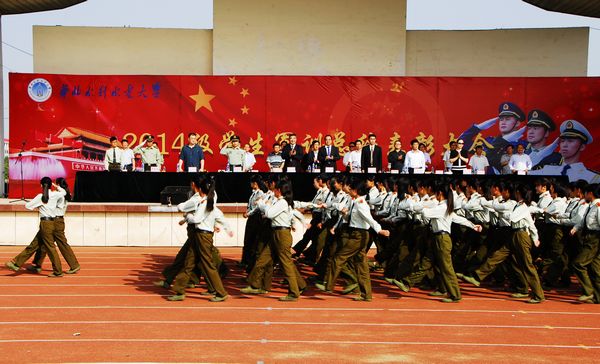 校党委书记朱海风、校长严大考等检阅、慰问2014级全体参训新生