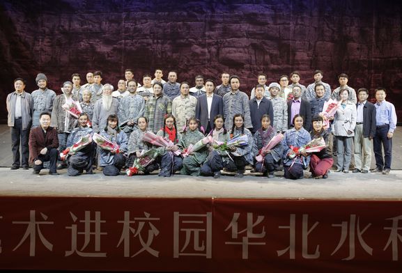 演出前,石书记致词,对出席本次活动的嘉宾和艺术家们表示热烈欢迎,对关注我校文化事业发展的各级领导和社会各界表示衷心的感谢。石书记强调,历届“高雅艺术进校园”活动的成功开展,不仅能让全校师生在校园里欣赏到艺术家们的精彩演出,同时也为大家搭建了一个接触高雅艺术、感受高雅艺术的平台。本次展演的话剧《红旗渠》,气势恢宏,视角独特;演员阵容整齐,实力雄厚;本剧曾经荣获河南省第十二届戏剧大赛“文华大奖”、 全国第十三届精神文明建设“五个一工程”奖等多项殊荣。话剧充分展示了“自力更生、艰苦创业、团结协作、无私奉献”的红旗渠精神,对于广大师生进一步了解红旗渠建设的历史、增强社会责任感、弘扬红旗渠精神具有积极的推动作用。