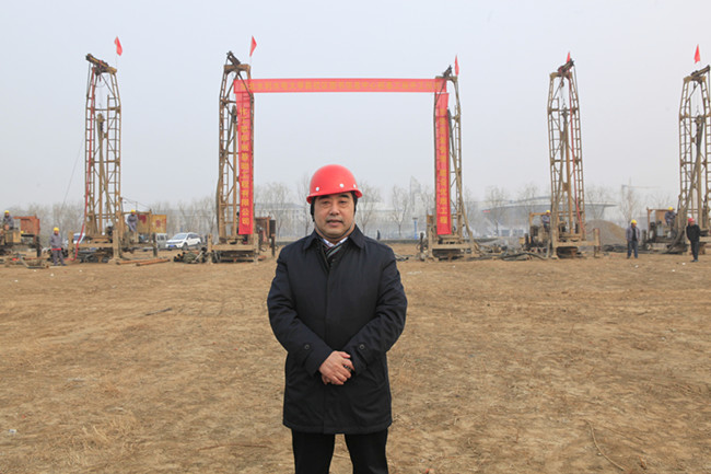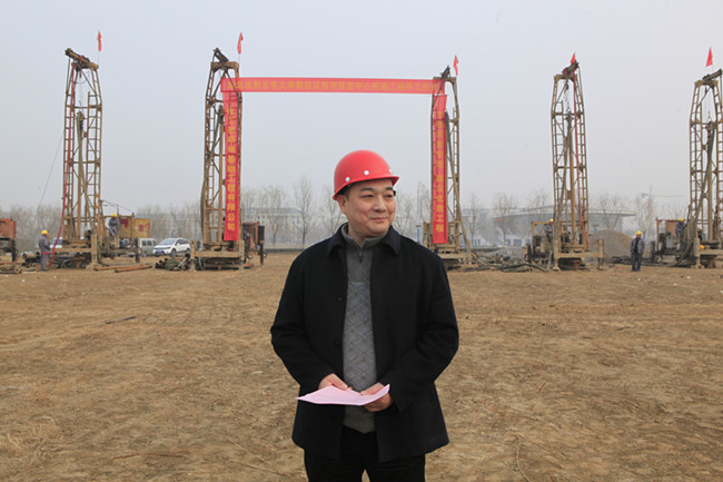 化工部郑州基础工程有限公司总经理宋士忠在桩基工程开工仪式上讲话