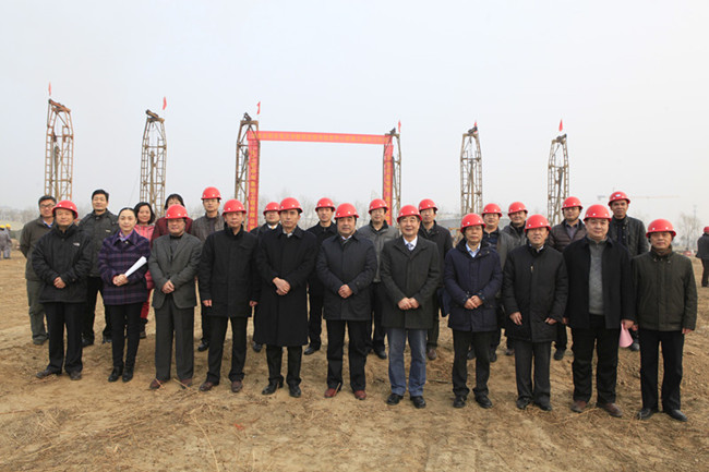 校领导与参加桩基工程开工仪式的工作人员合影留念