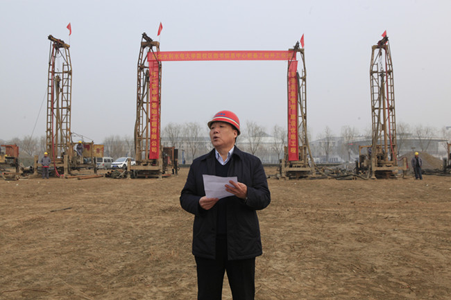 校党委书记朱海风宣布我校图书信息中心桩基工程正式开工