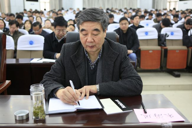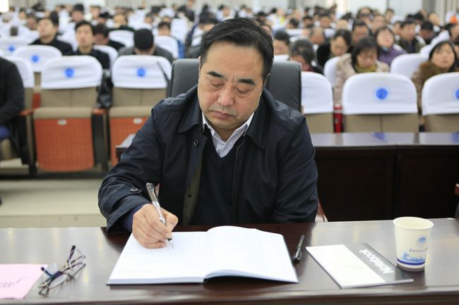 校党委书记朱海风认真聆听报告并做记录