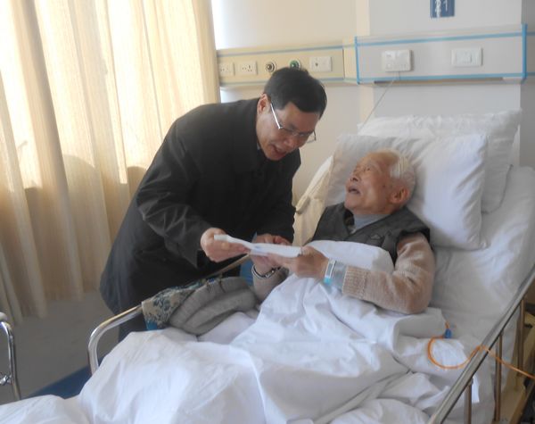 在江苏省南通市,许书记一行看望了正在医院疗养的我校离休干部程俊贤(1979年-1984年先后任华北水利水电学院党委副书记、书记)和夫人苏杰。许书记关切地询问二老的身体和生活状况,他饱含深情地说,学校的发展壮大离不开各个时期老领导、老同志的辛勤工作,老同志是学校的宝贵财富,任何时候学校都不能忘记。他叮嘱随行的有关同志,一定要认真学习上级有关政策,结合新情况,不断调研探索老干部工作的新途径、新方法,解决新问题,努力把老干部服务工作做深、做细、做实。