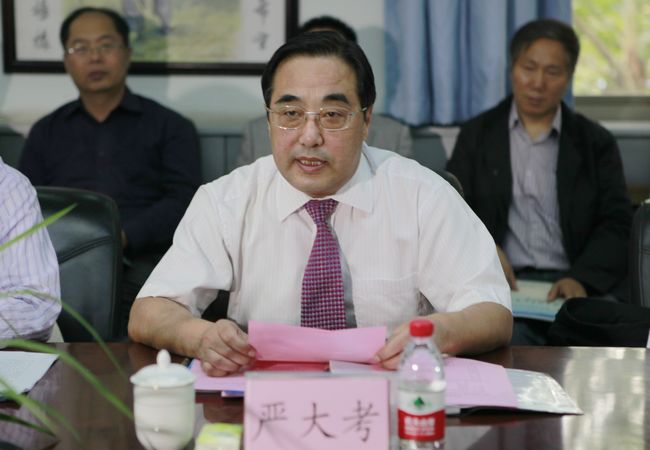 我校校长严大考主持汇报会并致欢迎辞