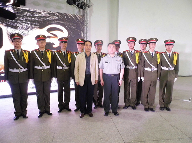 我校党委副书记石品与房教授、仪仗队队员合影