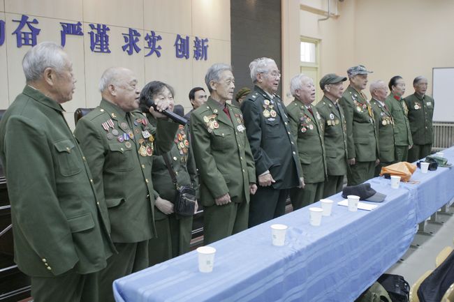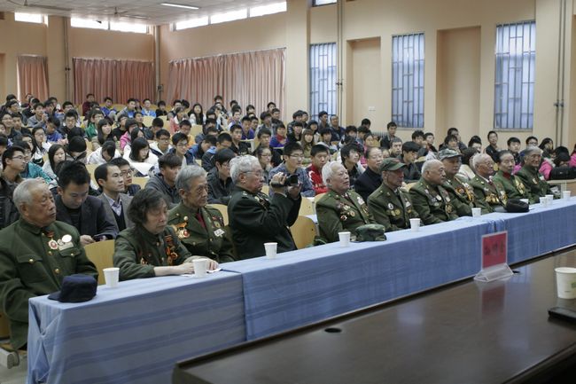 贺兴栋团长则用传统教育格言鼓励同学们牢记革命先辈忠于祖国、热爱党、不怕苦、不怕牺牲的革命英雄主义精神,继承革命先辈遗志,发扬抗美援朝的伟大精神,为共筑和谐社会而发愤图强。老英雄们慷慨激昂的讲述,舍生忘死的气势,惊心动魄的战争经历,深深打动了所有师生,会场不时响起热烈的掌声。