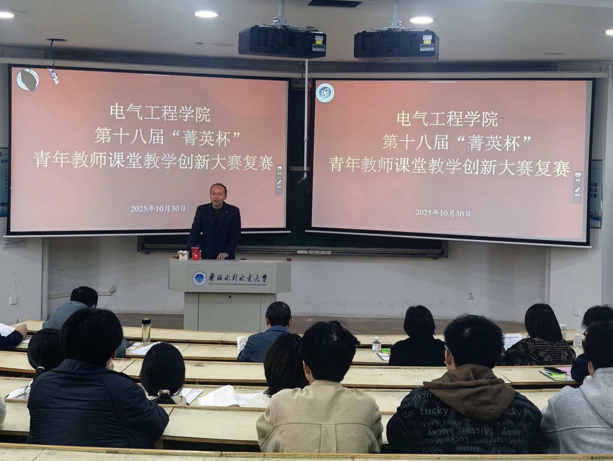 10月30日,电气工程学院第十八届“菁英杯”青年教师课堂教学创新大赛复赛在热烈的氛围中成功举行。经过各系的初步选拔,共有9名优秀青年教师进入决赛环节,充分展现了我院青年教师扎实的专业功底、蓬勃的创新活力与卓越的教学风采。