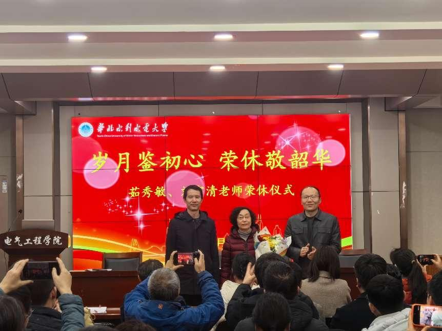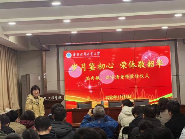 寒梅吐蕊,温情满溢。2026年1月14日下午,电气工程学院在花园校区1413会议室隆重举行以“岁月鉴初心、荣休敬韶华”为主题的教师荣休仪式,深情致敬茹秀敏、刘宇清两位老师数十载的教育坚守与无私奉献。学院党委书记范功伟、执行院长李忠洋,副院长张晋华、学术副院长吕灵灵出席仪式,全体教师共同见证这一温馨时刻。仪式由党委书记范功伟主持。