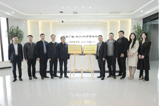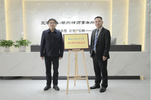 2025年11月4日,法学院与北京广盛(郑州)律师事务所举行共建法学教育实践基地、法治宣传教育基地签约暨揭牌仪式。学院党委书记潘松岭、院长刘华涛、法律事务中心副主任张兵建、学院党政办主任李金龙和北京广盛(郑州)律师事务所主任黄钢、支部书记乔泽宇、资深律师苑金光、谭梦迪、张靖波等参加共建活动。