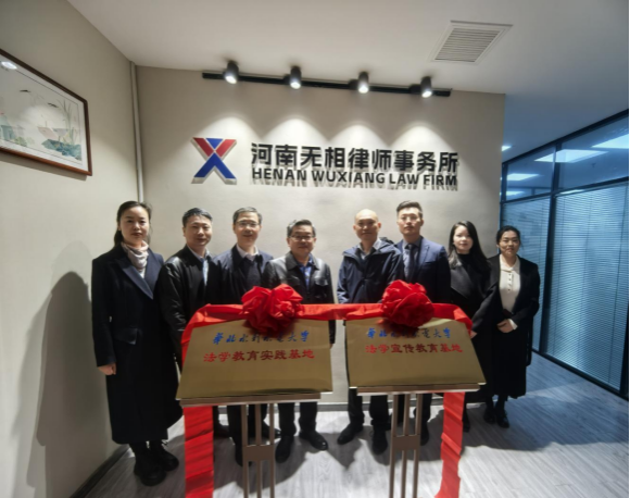 2025年11月6日,华北水利水电大学法学院与河南无相律师事务所“院所共建”签约暨揭牌仪式在河南无相律师事务所隆重举行。党委书记潘松岭,院长刘华涛,党政办主任李金龙,团委书记吴怡璇和河南无相律师事务所主任张锐朋,执行主任张瑞强,律所合伙人郭若思、刘若冰共同出席,此次签约不仅开启院所合作、协同育人新篇章,更将“访企拓岗促就业”落到实处,为法学专业学生搭建起从校园到职场的实践就业桥梁。