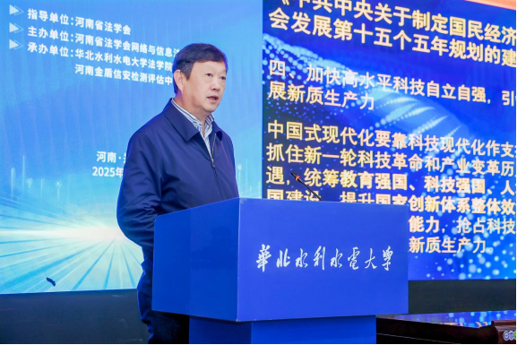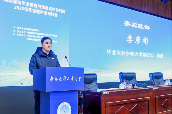 12月14日,河南省法学会网络与信息法学研究会2025年年会暨“数智时代的网络空间法治与规范治理”学术研讨会在我校龙子湖校区召开。会议由河南省法学会网络与信息法学研究会主办,华北水利水电大学法学院、河南金盾信安检测评估中心有限公司承办。我校副校长李彦彬,河南省法学会副会长、网络与信息法学研究会会长孙君健,河南省法学会网络与信息法学研究会副会长兼秘书长张世彬,河南金盾信安检测评估中心有限公司董事长、高级工程师梁宏,法学院党委书记潘松岭、院长刘华涛出席会议,来自全省高校、政法机关、法律实务界的200多名专家学者和师生代表参加会议。