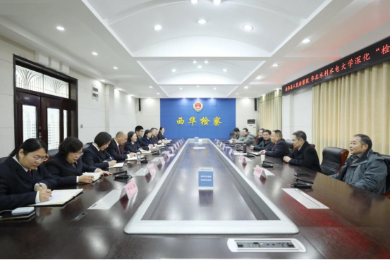 为深入推进校检合作常态化、实效化,加强法学理论与司法实务的深度融合。2025年12月24日,法学院党委书记潘松岭、院长刘华涛、副院长袁宏山、法律事务中心副主任张兵建等一行前往西华县人民检察院进行交流。副院长袁宏山受邀参加西华县人民检察院举办的公检法司同堂培训会并进行专题授课,西华县委政法委、公安局、法院、司法局相关业务骨干及检察院全体干警参加培训。会议由西华县检察院党组书记、检察长马灵钧主持。
