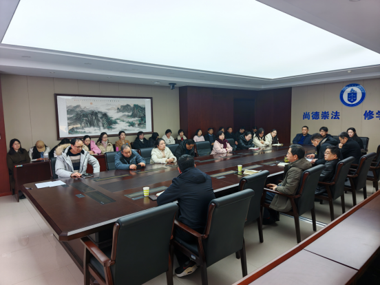 2026年2月27日下午,法学院(法律事务中心)在学院201会议室组织召开全体教职工大会。学院党委书记潘松岭、院长刘华涛及其他领导班子成员出席,全体教职工参加会议。会议由潘松岭主持。