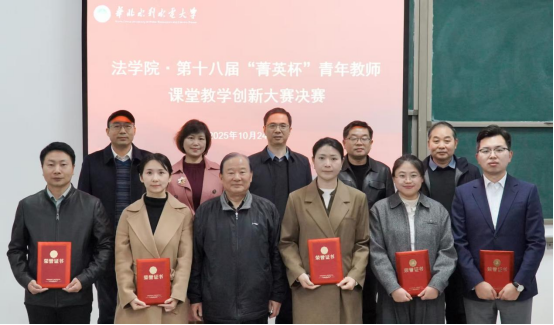为进一步提升青年教师教学能力,推动课堂教学创新实践1024日下午,法学院隆重举办“华法杯”暨第十八届“菁英杯”青年教师课堂教学创新大赛学院决赛5位青年教师同台竞技展风采,校督导组李以明教授、学院党委书记潘松岭、院长刘华涛及骨干教师代表全程观摩