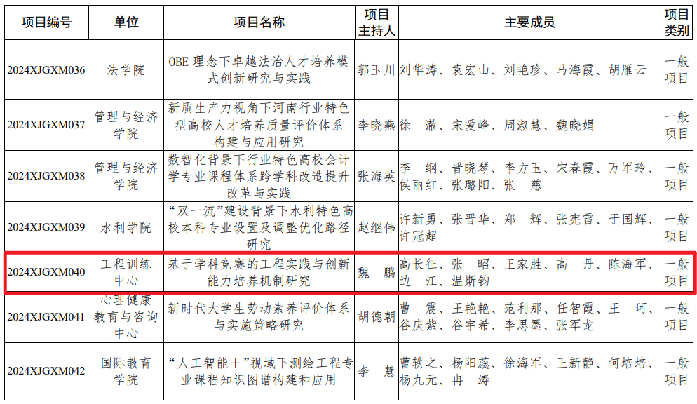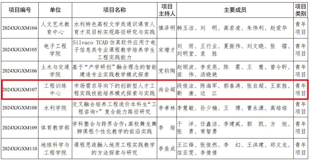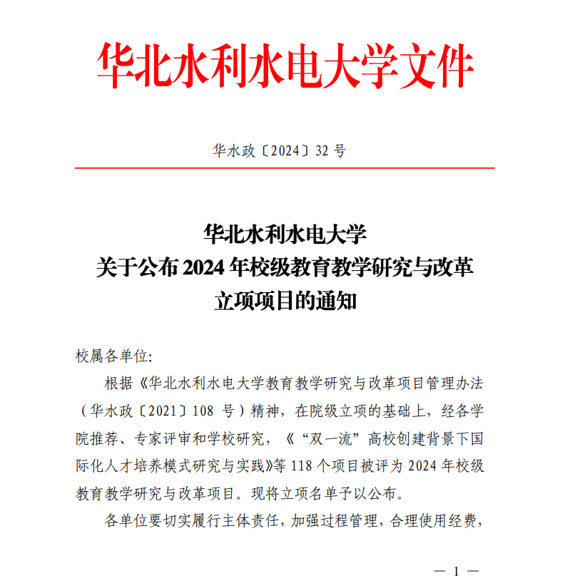 华北水利水电大学关于公布2024年校级教育研究与改革立项项目的通知