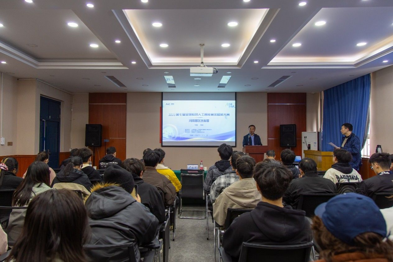 开幕式上,淮阴工学院副校长严云洋教授致辞。他指出,该赛事作为全球极具影响力的校园人工智能赛事,始终秉持“以赛促学、以赛促教、以赛促创”的核心宗旨,自2019年创办以来,已覆盖全球26个国家和地区,吸引1000多所高校参与,累计参赛队伍超2.7万支,2023年成功入选全国普通高校学科竞赛排行榜,成为检验高校人工智能学科教学成果与学生创新实践能力的重要赛事。本届大赛热度再创新高,全球共有961所高校的18172支团队报名参赛;河南赛区为首次举办,便吸引全省600多支队伍、2000余名学子踊跃参与,充分展现了人工智能领域的蓬勃生机与青年学子的创新热情。愿该赛事为全球人工智能领域人才培养、学术交流与创新实践搭建了重要桥梁,对推动人工智能相关学科建设、产业升级具有推动作用,希望参赛学子以赛为媒,切磋技艺、共同成长。
