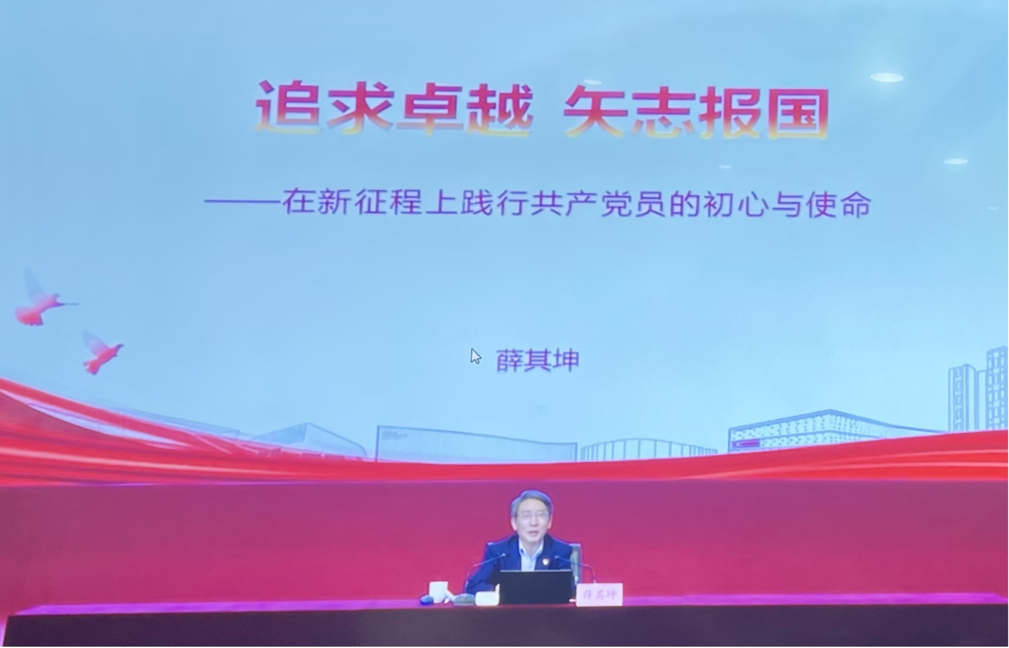 薛其坤院士以《追求卓越矢志报国——在新征程上践行共产党员的初心与使命》为题,从三个维度分享感悟,通过钱学森、郭永怀等先辈事迹,结合自身科研教育实践,诠释了科学家家国情怀,为党员教育科技工作者指明责任担当路径,让党员们接受深刻精神洗礼。