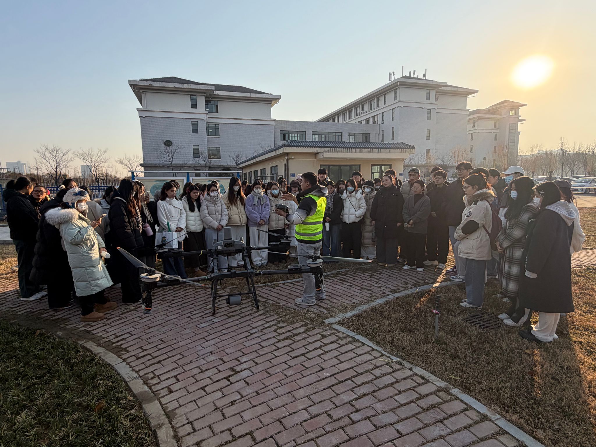 12月28日,华北水利水电大学工程实践与创新中心(大学科技园管理办公室)联合入驻园区的河南中空航空科技有限公司,共同开设无人机基础理论与实践实训教学。这场专为外国语学院学生打造的跨学科实践培训、实训教学,不仅让学生通过了解无人机的基础理论和其应用场景,更是通过十多位教练对学生耐心细致的实操教学,让学生们掌握了无人机驾驶核心技能,了解了我国低空经济产业发展和需求,满足了学生对无人机的好奇和想象。为复合型人才培养注入新活力、探索新方案。