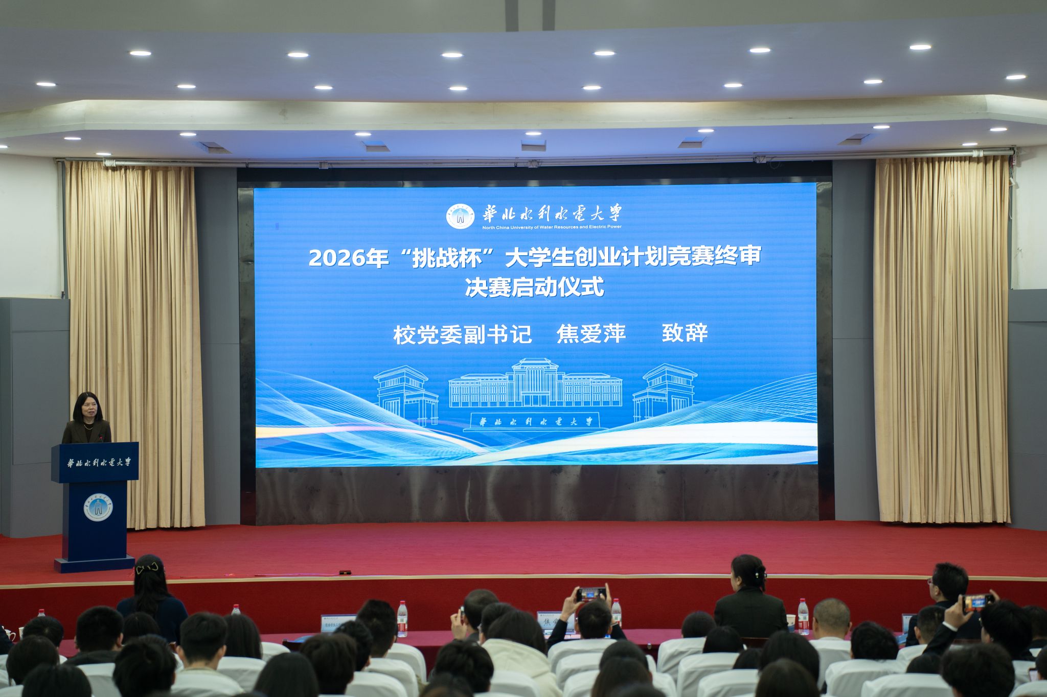 焦爱萍代表学校向各位领导、专家评委、参赛师生致以诚挚的欢迎和衷心的感谢。她表示,“挑战杯”中国大学生创业计划竞赛是高校服务国家创新驱动发展战略的关键载体,也是高校创新创业领域的标杆性赛事,为大学生施展创新才华、践行创业梦想提供了重要舞台。她指出,学校始终高度重视创新创业教育工作,锚定“双一流”创建中心任务,大力实施卓越创新人才培养改革,构建了“学校高位推动、部门协同联动、学院具体落实、师生积极参与”的创新创业工作格局。她向全体参赛师生提出三点希望:一是要以“国之大者”为念,锚定创新创业的正确方向,将个人理想融入国家发展大局;二是要以“敢闯敢试”为魂,锤炼攻坚克难的实践本领,做到早进课题、早进实验室、早进团队;三是要以“团结协作”为基,凝聚共创共赢的强大合力,打破学科壁垒,融汇多元专业智慧,打造出更具核心竞争力、更富社会价值的优质参赛项目。