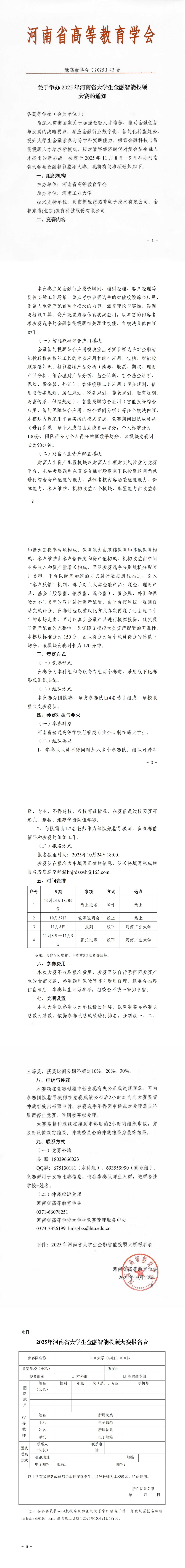 关于举办2025年河南省大学生金融智能投顾大赛的通知