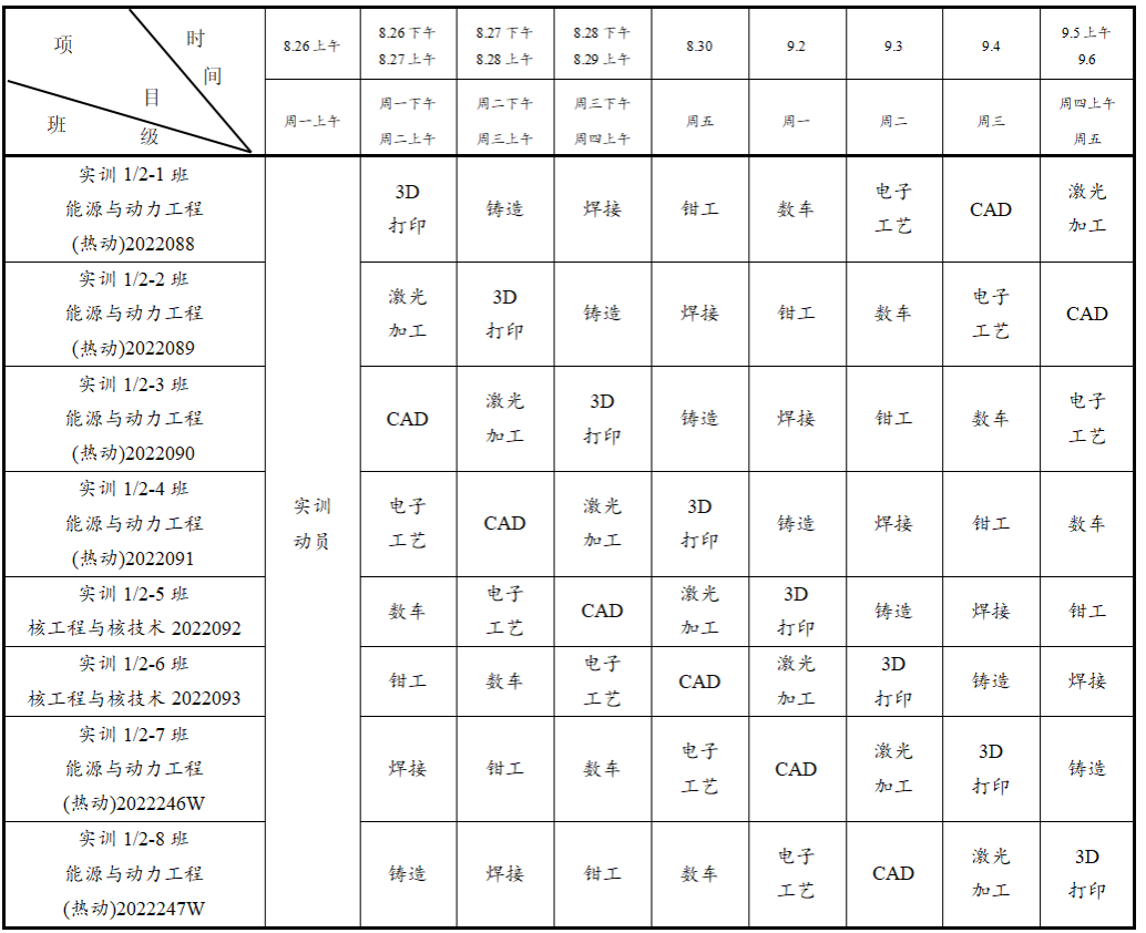 注:(1)CAD、激光加工、3D打印、电子工艺实训地点在花园校区南院工程训练中心4楼;