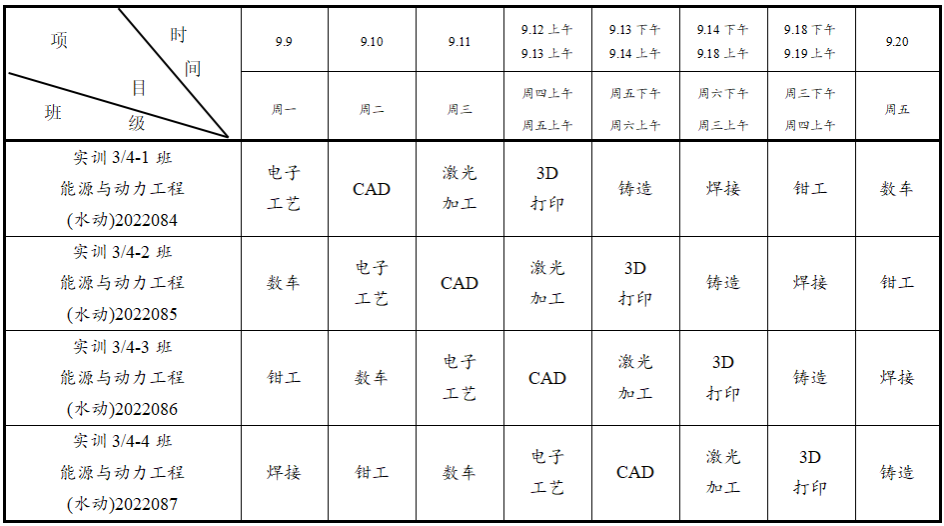 注:(1)CAD、激光加工、3D打印、电子工艺实训地点在花园校区南院工程训练中心4楼;
