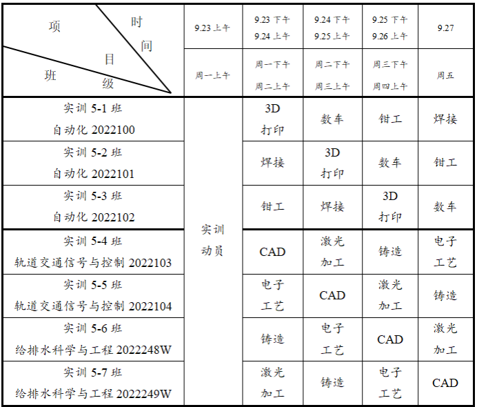 参加实训学生:自动化2022100-102,轨道交通信号与控制2022103-104,给排水科学与工程2022248W-249W