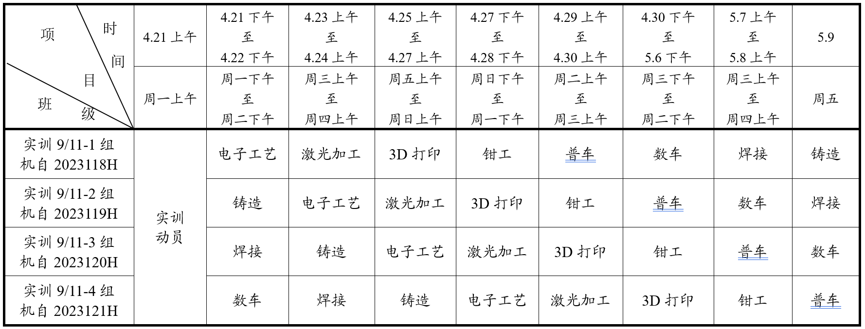 四、实训动员安排:2025年4月21日上午8:00于花园校区南苑工程训练中心一楼大厅进行。