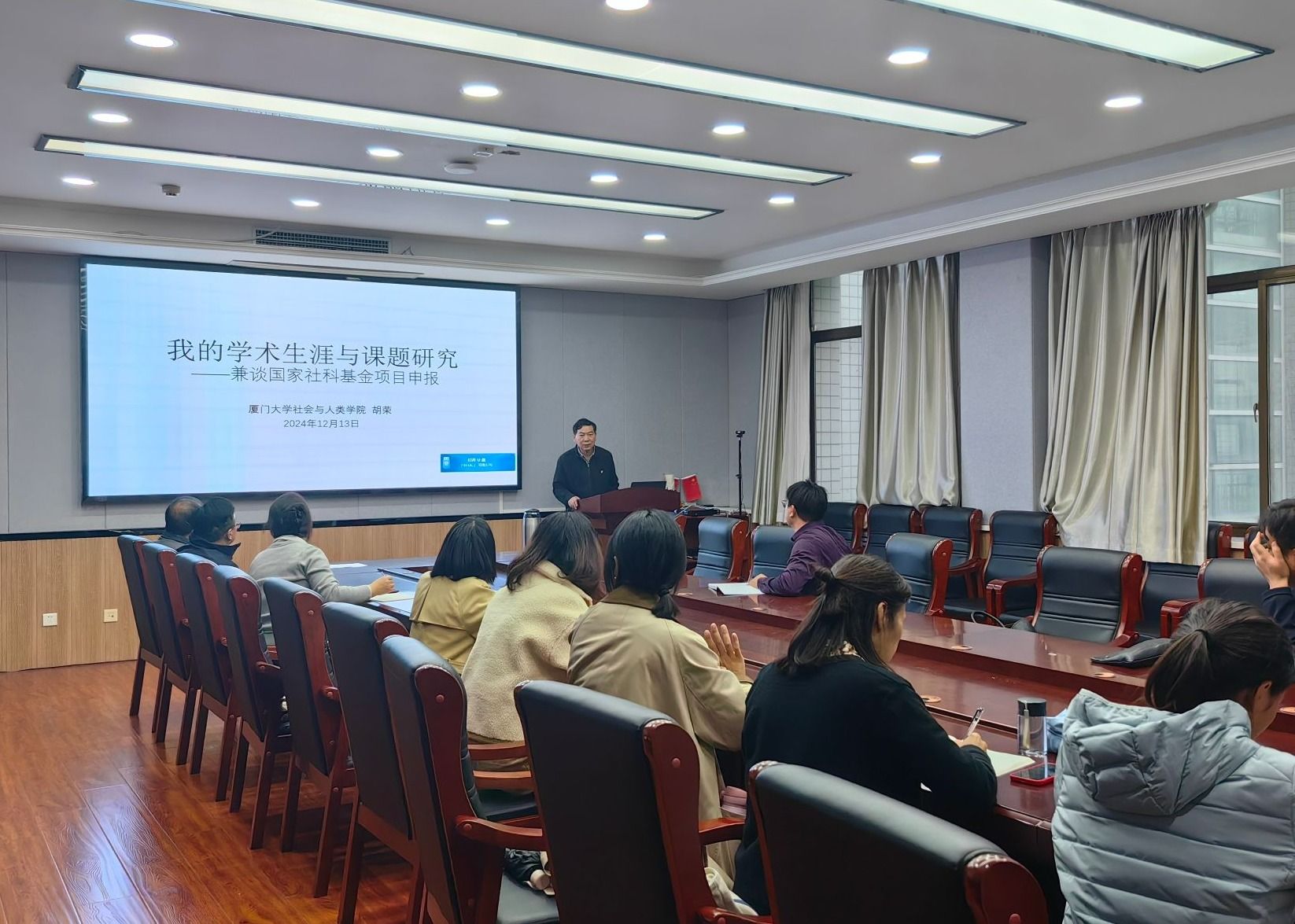 10月9日下午,教育部社会学科教学指导委员会副主任委员、厦门大学社会与人类学院院长胡荣教授受邀为我院师生作了题为《我的学术生涯与课题研究》的学术报告。教师和学生代表聆听了报告。李贵成院长主持了报告会。