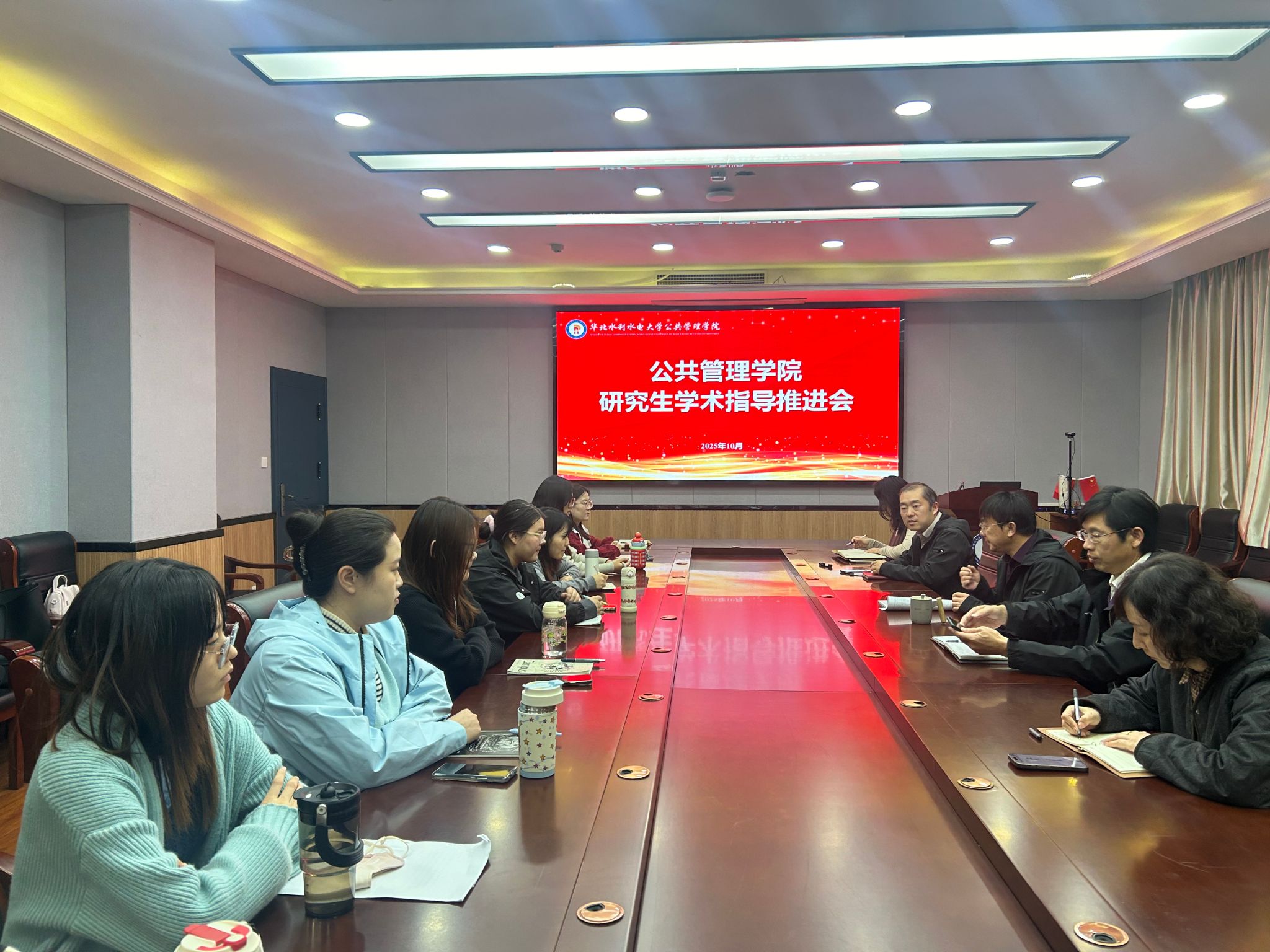 为进一步加强研究生培养过程化管理,引导学生明确学业目标,确保研究生培养质量,推动研究生培养高质量发展,10月22日下午,公共管理学院在学院7217会议室召开硕士研究生学业指导推进会。学院领导班子成员、学科及研究生管理办公室主任张秋霞、辅导员马雪铭以及学院全体研究生参加会议。会议由副院长张建松主持。