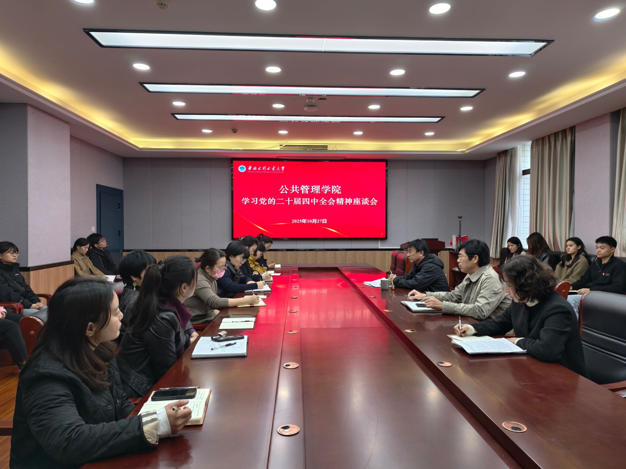 10月27日下午,学院在7217会议室召开学习党的二十届四中全会精神座谈会,学院班子成员、各科室负责人及师生党员代表等30余人参会,会议由学院党委书记何芹主持。