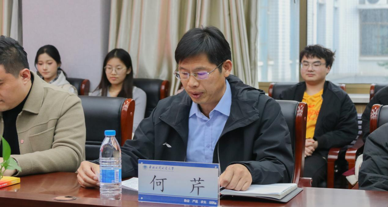 会议伊始,公共管理学院党委书记何芹致辞。他围绕《全民阅读促进条例(草案)》的核心内容进行了深入解读,强调了全民阅读在提升公民素质、促进社会文明进步中的重要意义。何芹书记充分肯定了水经尔雅书会成立以来在推动校园阅读活动方面取得的积极成效,并表示学院和学校将持续支持书会的发展,鼓励广大学生以阅读为舟,在知识的海洋中汲取力量,不断提升自我,为社会发展贡献力量。